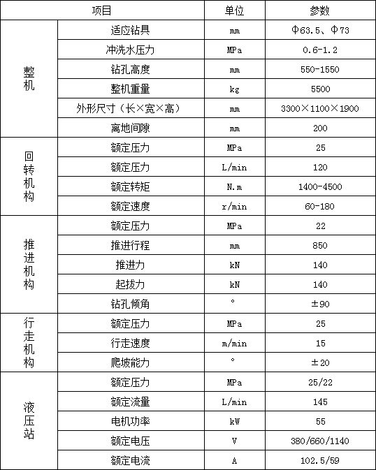 3. 履帶行走,大大提高移鉆、穩(wěn)鉆的效率,顯著減輕工人的體力勞動強度;